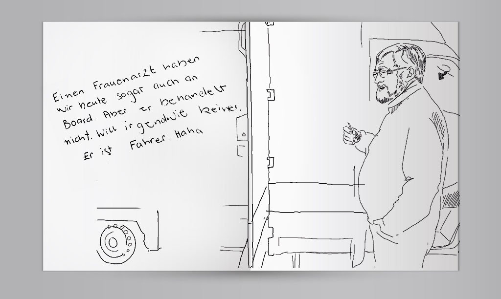 Mit freundlicher Genehmigung veröffentlichen wir hier eine zeichnerische Reportage von Leonie Proske. Während eines Semesters hat sie unser Zahnmobil begleitet. In Ihrem Reportagebuch stellt sie ihre persönlichen Aufnahmen und Zeichnungen vor, die direkt vor Ort entstanden sind und über den Alltag des Zahnmobils berichten. Vielen Dank für diese wunderbare Arbeit!